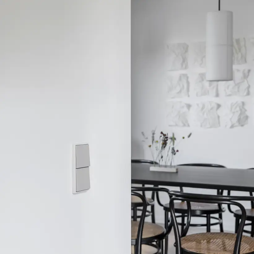 Le LS 990 dans un blanc pur apporte une touche de clarté et de pureté. La qualité et la forme claire du LS 990 sont éprouvées depuis plus de 40 ans. Le modèle classique de l’interrupteur avec son cadre tout en finesse s’adapte en parfaite harmonie à chaque environnement.