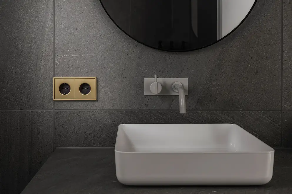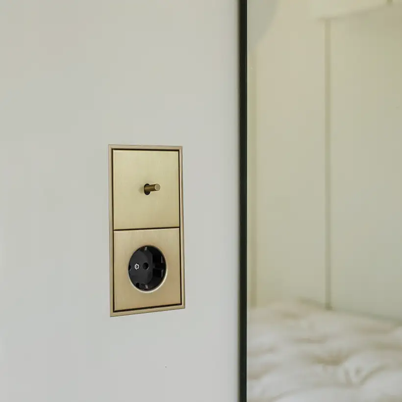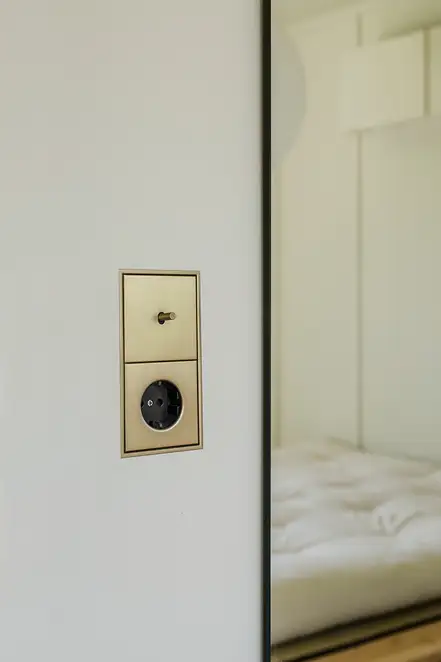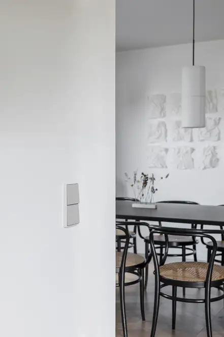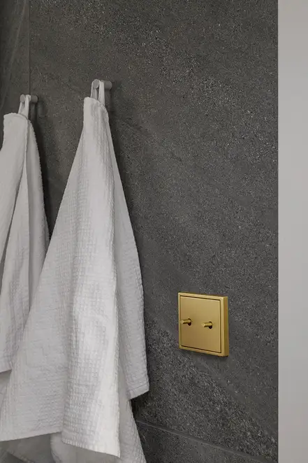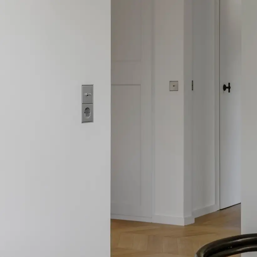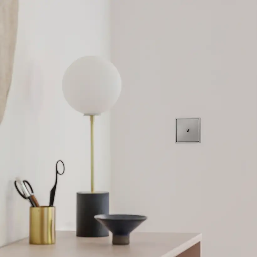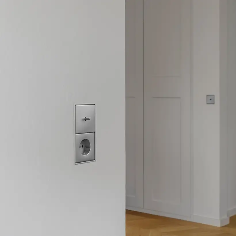 Based on the JUNG switch of the early years, the LS 1912 rocker switch turns the switching mechanics into a new experience. The switch mechanism is designed so that the cover closes flush with the frame. Only the rocker lever rises out of the unit as style element. JUNG transfers the many years of experience in metalworking into an elegant selection of materials – from aluminium, via stainless steel and brass to chrome.