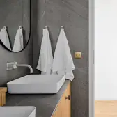 Specially selected accessories and coherent details complete the overall impression. The owners have focussed on quality and design, right up to the light switches and sockets. In all rooms, solutions from JUNG are used for the electrical installation. In the kitchen and dining room, the LS 1912 switch range in stainless steel appeals with its elegant appearance. The toggle lever switches are installed flush in frames and flush-mounted boxes from the LS ZERO system, partly in combination with appropriate sockets. The LS 1912 was also used in the bathroom and the parent’s bedroom in the classic brass design. On the left and right next to their bed, the Bainbridges had in each case two sockets with USB sockets installed. In this way, smartphones and tablets can charge while they sleep. In the living room in turn, the couple used the classic JUNG LS 990 in light grey for switches and sockets. In the two children’s rooms, on the other hand, colours from the colour range of Les Couleurs® Le Corbusier from JUNG were included in the electrical installation. A deep red was chosen along with a lively green. As a result, the rooms were given an individual touch in each case.