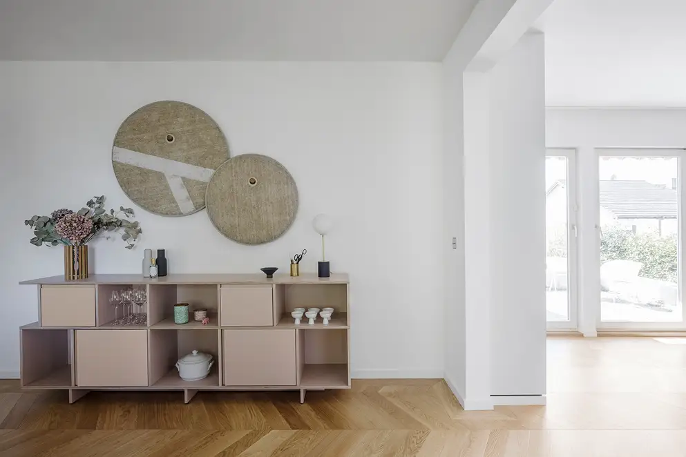 A bungalow from the late 1970s is the new home of Talitha and Michael Bainbridge and their children. The two young interior designers are the brains behind ZWEI Design, a studio specialising in interior design and product design, mainly active in the area of Basel, Lörrach and Freiburg. They have transformed the almost 125 m² living space in their newly acquired low-rise building into a very contemporary and comfortable home piece by piece over the last year with great enthusiasm and personal effort. A successful business card has been created for the work of the two interior designers, who recognise their new home as a kind of showroom as well.