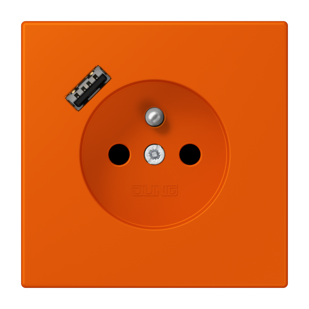 Prise, système français et belge, 16 A 250 V ~, avec chargeur USB (JUNG Quick Charge®), 1 x type A, Safety Plus, Série LS, orange vif (4320S)