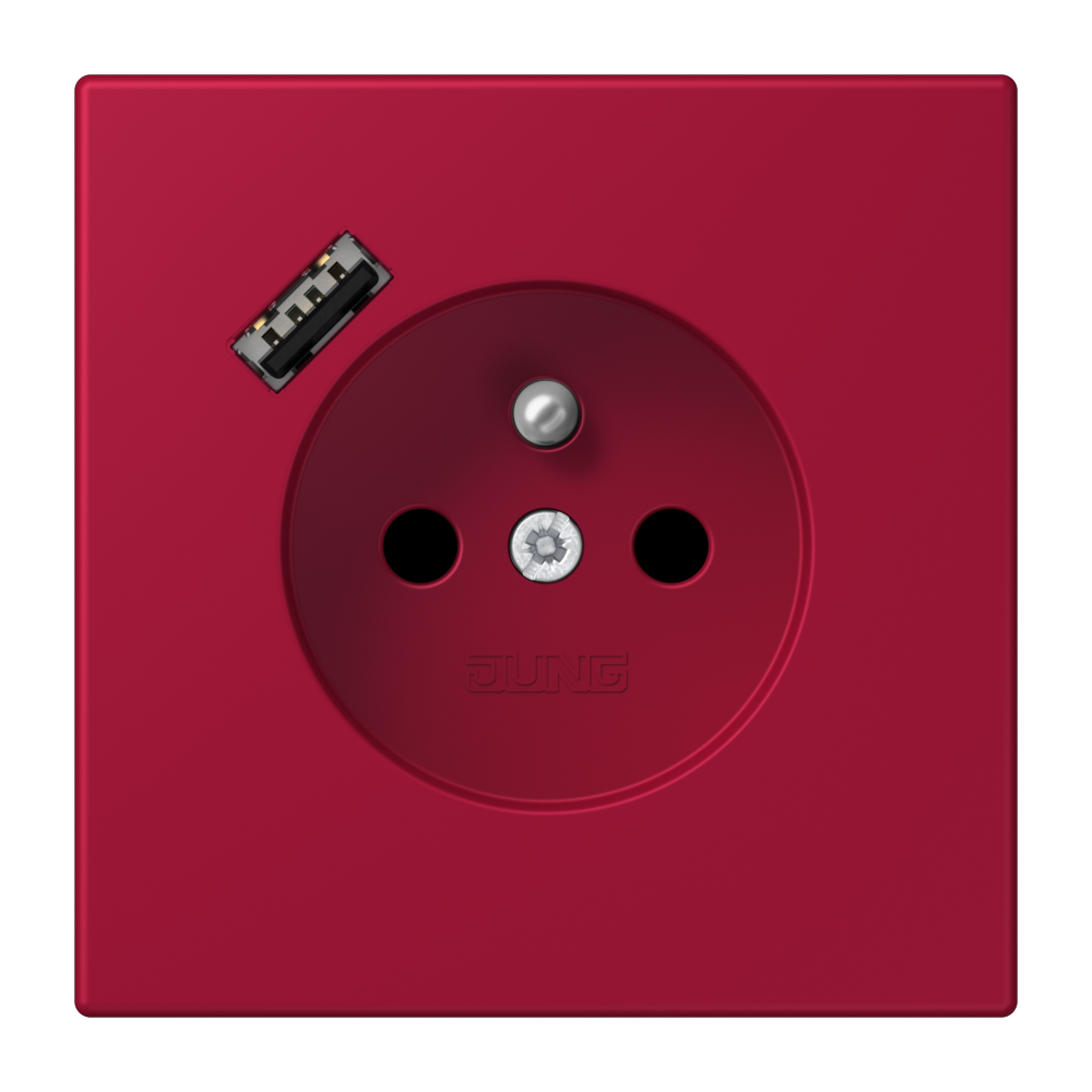 Prise, système français et belge, 16 A 250 V ~, avec chargeur USB (JUNG Quick Charge®), 1 x type A, Safety Plus, Série LS, rouge carmin (32100)