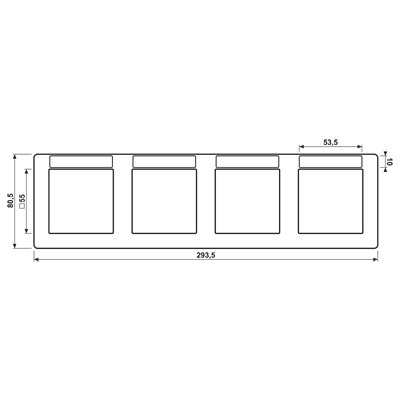 Placca 4 moduli, con finestra (a tenuta d’acqua nebulizzata), AS 500, thermoplast, bianco alpino, montaggio orizzontale