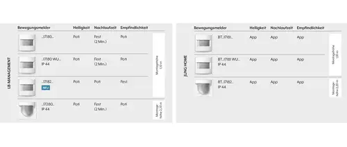 Elektroniniai sprendimai naujai statybai ir modernizacijai: „LB-Management“ suteikia sprendimus beveik visoms norimoms apšvietimo, užtamsinimo ir temperatūros valdymo funkcijoms. Naudodami komponentus galite, pavyzdžiui, pagal laiką valdyti žaliuzes ir ritinines žaliuzes arba nustatyti, kad apšvietimas būtų įjungiamas aptikus judesį. Sistema „LB-Management“ tinka įrengiant instaliaciją pirmą kartą visuose naujai statomuose pastatuose. Atskiri komponentai taip pat lengvai integruojami į esamą instaliaciją atliekant modernizavimą.