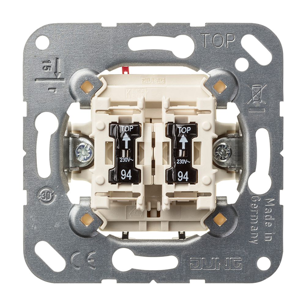 • 2-gang switch (insert), 2 x 1-pole, 1-way with 2 glow lamps ref.-no. 94, 10 AX 250 V ~