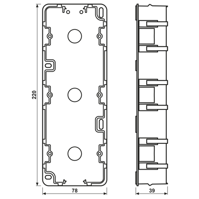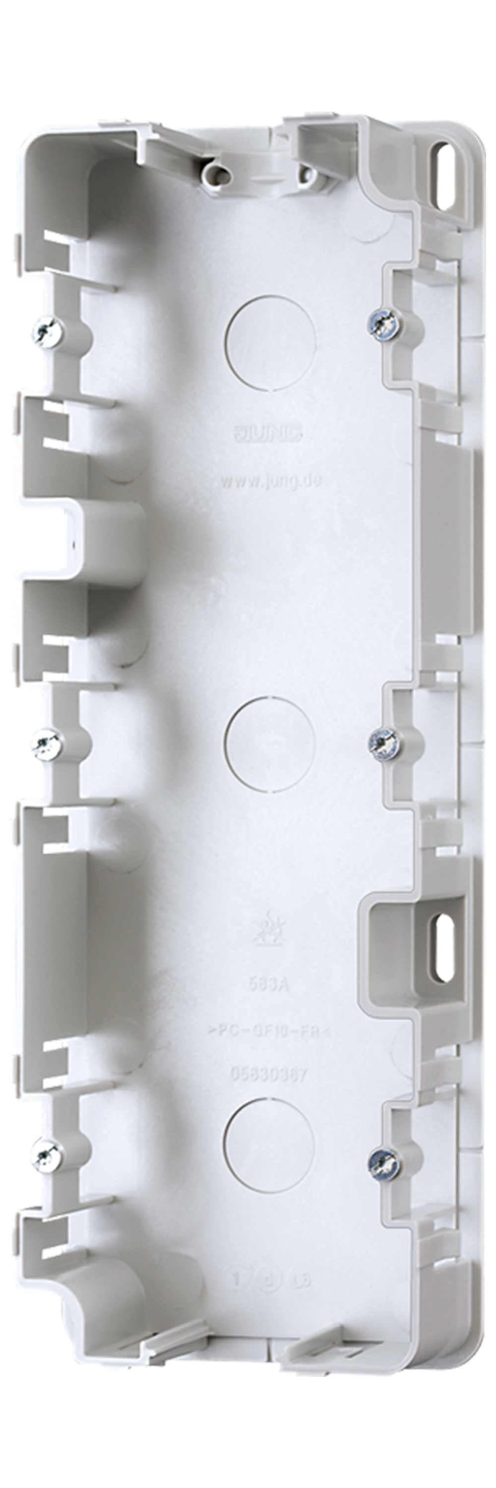 Mounting box for surface caps 3-gang, thermoplastic, light grey, vertical and horizontal installation