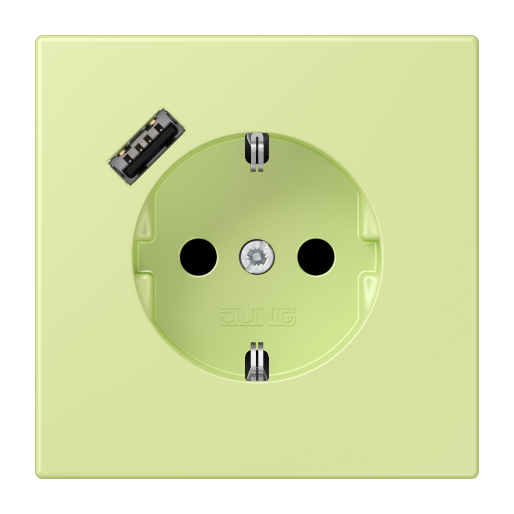 SCHUKO® socket, 16 A 250 V ~, with USB charger (JUNG Quick Charge®), 1 x type A, Safety Plus, LS range, vert jaune clair (32053)
