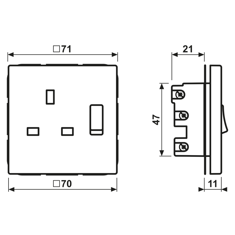 Switched socket, British Standard, 13 A 250 V ~, with contact protection, screw terminals, LS range, white