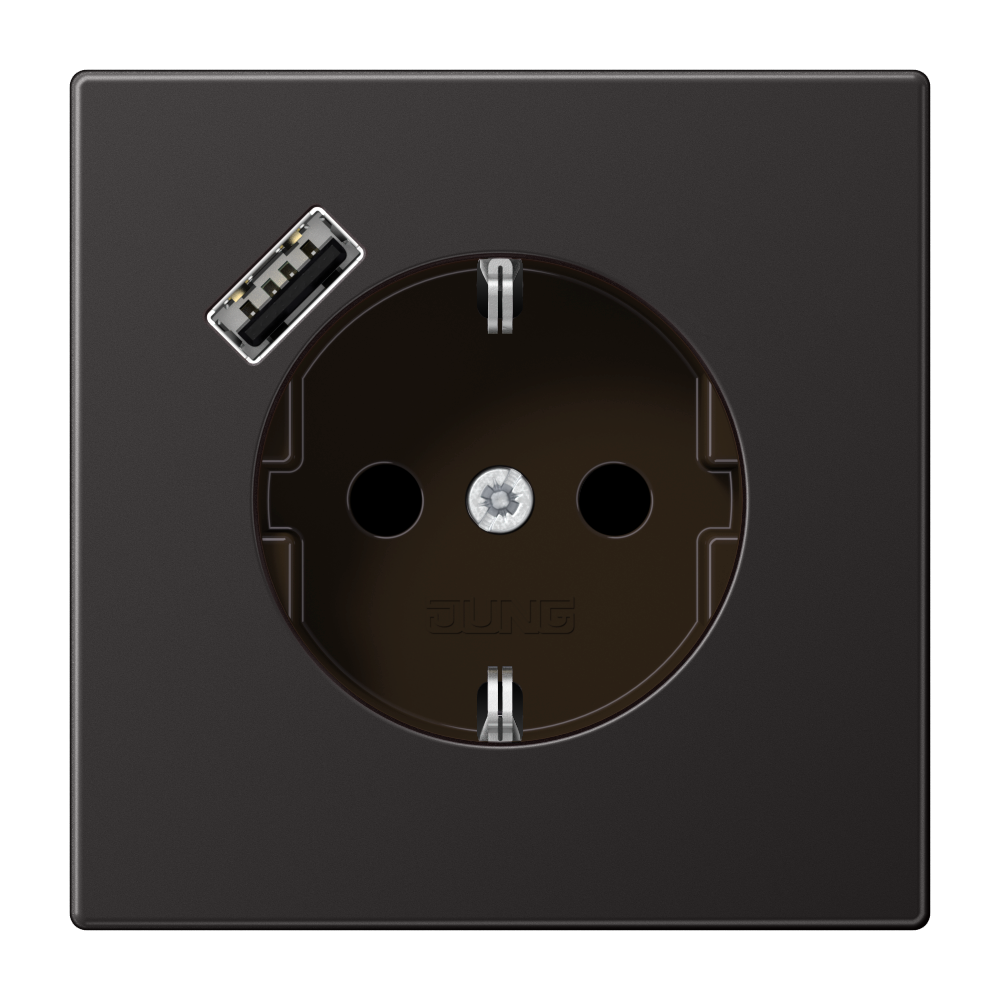 SCHUKO® socket, 16 A 250 V ~, with USB charger (JUNG Quick Charge®), 1 x type A, Safety Plus, LS range, dark