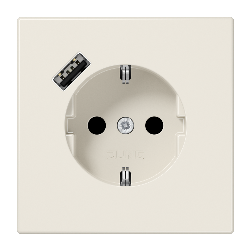 SCHUKO® socket, 16 A 250 V ~, with USB charger (JUNG Quick Charge®), 1 x type A, Safety Plus, LS range, ivory