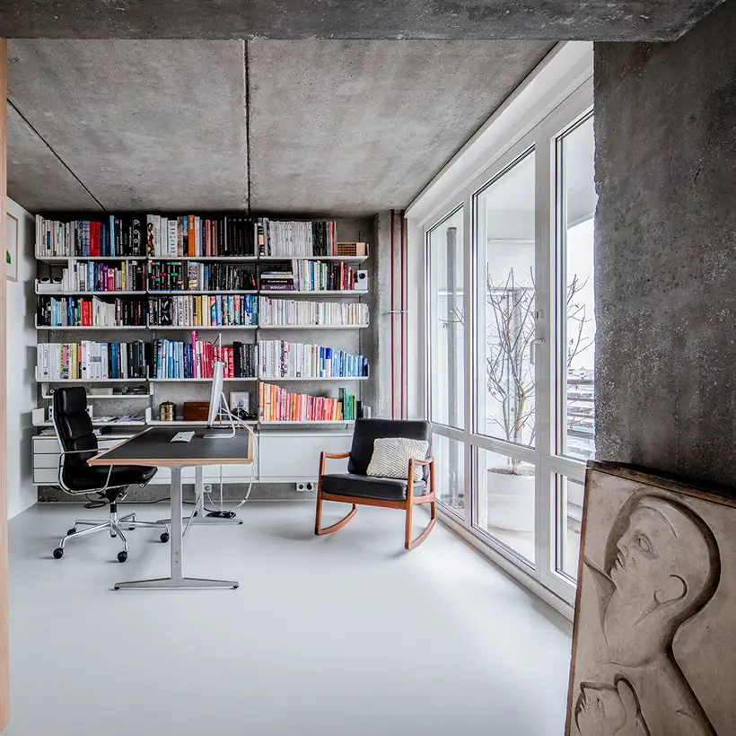The eight powerful, high-rise residential buildings along the Leipziger Straße in the Mitte district of Berlin – each of which were erected in pairs – come from the glory days of the GDR. They were a response to the high-rise Springer building in the west and today it is hard to imagine the cityscape without them. At the same time their reputation repeatedly alternates between fame and notoriety. Currently, however, this group of buildings is really hip. Affordable rents in a prime central location almost allow you to forget the rugged charm of the 23 to 25-storey prefabricated concrete buildings and the noise of the busy multi-lane Magistrale at their feet. So today the buildings are occupied by a young, urban clientele. And the architect Christopher Sitzler also lives and works there. His home measures almost 100 square metres.