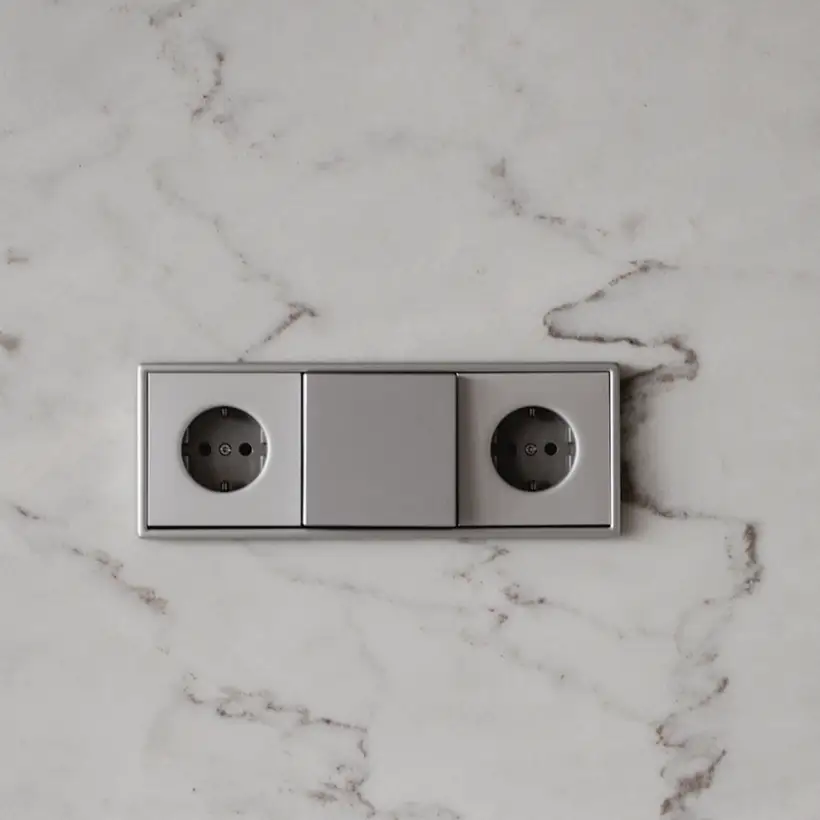 Het originele LS 990 in echt aluminium staat voor koele elegantie in een tijdloze, vierkante vormgeving. In dezer uitvoering geeft hij de elektrotechnische installatie een bijzondere puristische uitstraling.