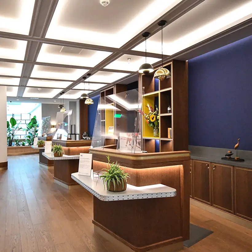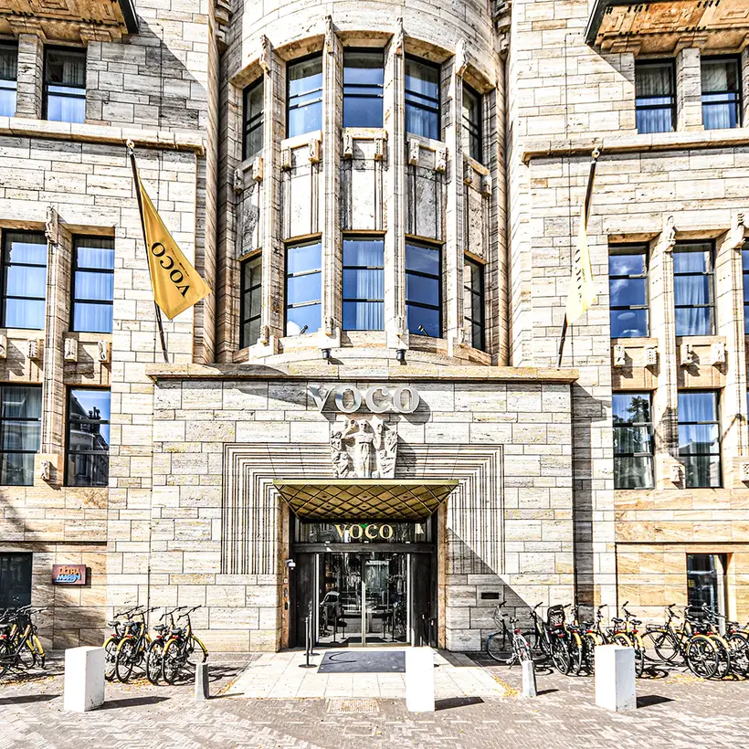 Eind juni 2021 opende het eerste voco™ hotel in Nederland haar deuren. Gelegen in het centrum van Den Haag aan de Kneuterdijk, te midden van musea, winkels, erfgoedlocaties en het Vredespaleis, komen typisch Nederlands design en een informele stijl samen in dit 204 kamers tellende lifestyle hotel. Het pand, dat oorspronkelijk stamt uit 1923, deed tot 2017 dienst als hoofdkantoor van ABN AMRO. In opdracht van ontwikkelaar UBM Development AG, is Eentien Architecten verantwoordelijk voor het ontwerp van de transformatie van historisch en statig bankgebouw naar uitnodigend 4-sterren hotel, waarbij de imponerende voorgevel met ornamenten geheel behouden is gebleven. Het beheer van voco® The Hague is in handen van het internationaal bekende InterContinental Hotels Group IHG.