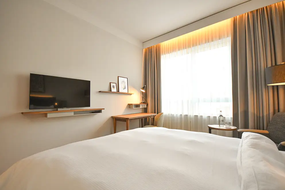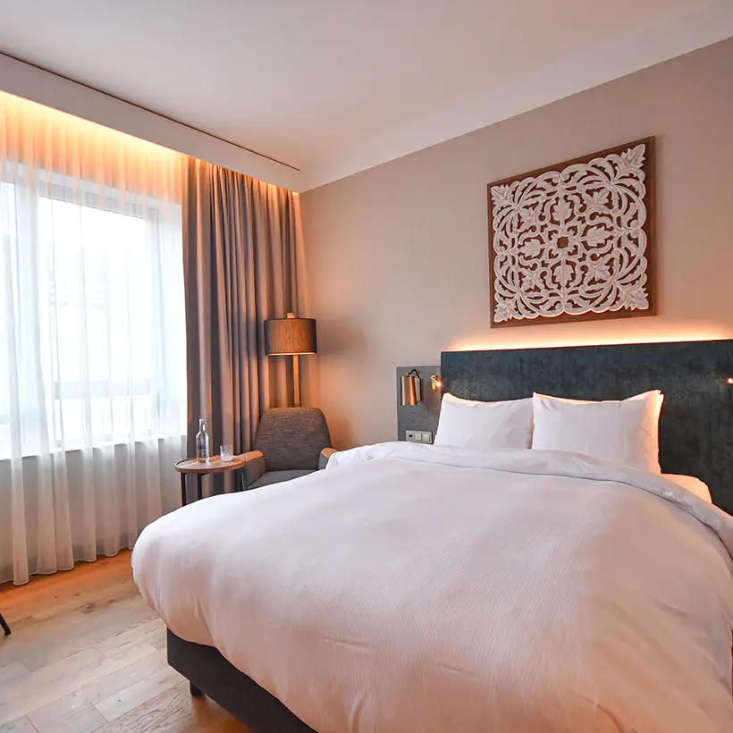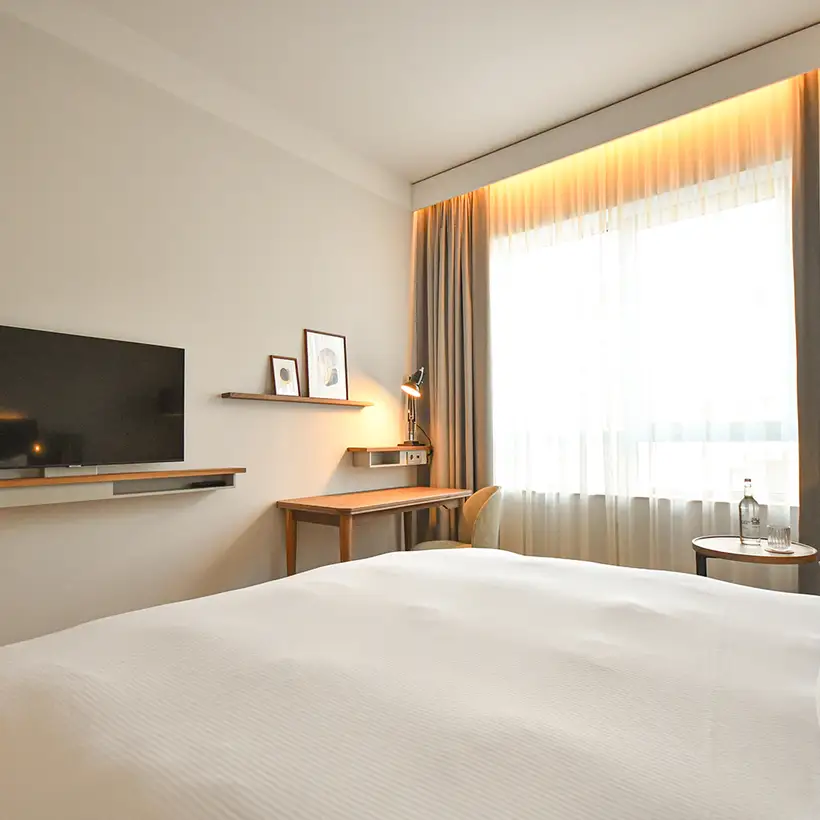 Toegangscontrole met een extra handige functie: met de hotelcardhouder in JUNG design heeft de gast niet alleen toegang tot de kamer, maar stuurt hij ook gelijk de stroomvoorziening. Bij binnenkomst schakelt de stroomvoorziening aan, en bij het verlaten van de kamer.