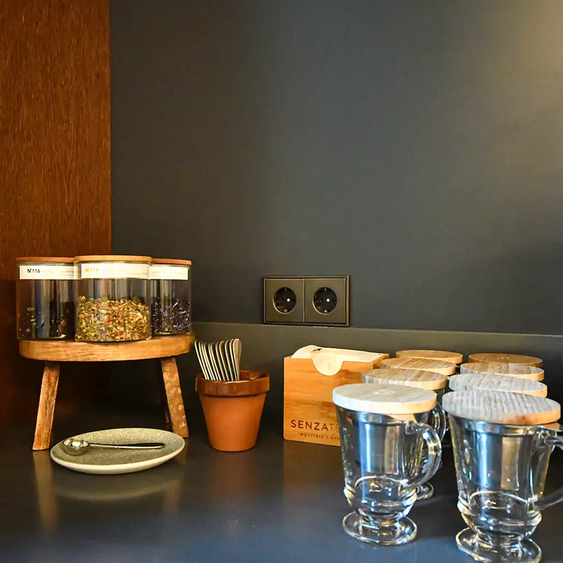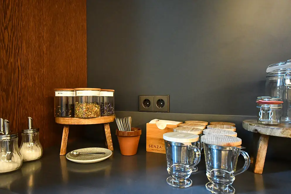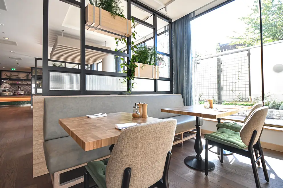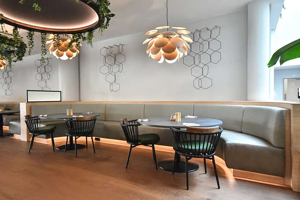 Naast het luxe A 550 programma in champagne voor de kamers zijn er verschillende luxe uitvoeringen van het strak vormgegeven programma LS 990 toegepast in de algemene ruimtes op de begane grond, steeds passend bij de inrichting. Zo heeft de ‘Botanica kitchen, bar & lounge’ een grote diversiteit aan kleuren en materialen in contactdozen en laadcontactdozen, zoals de metalen uitvoeringen Messing klassiek, Messing antiek, Aluminium en LS 990 lichtgrijs kunststof.