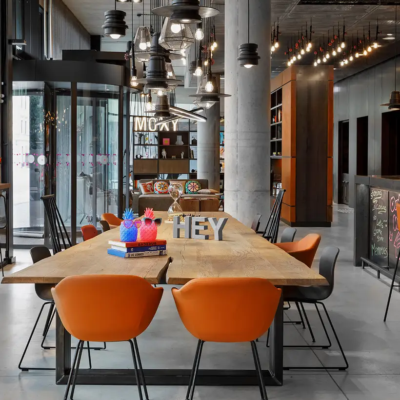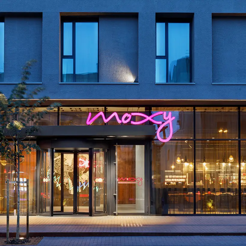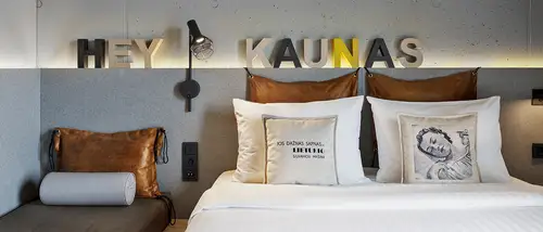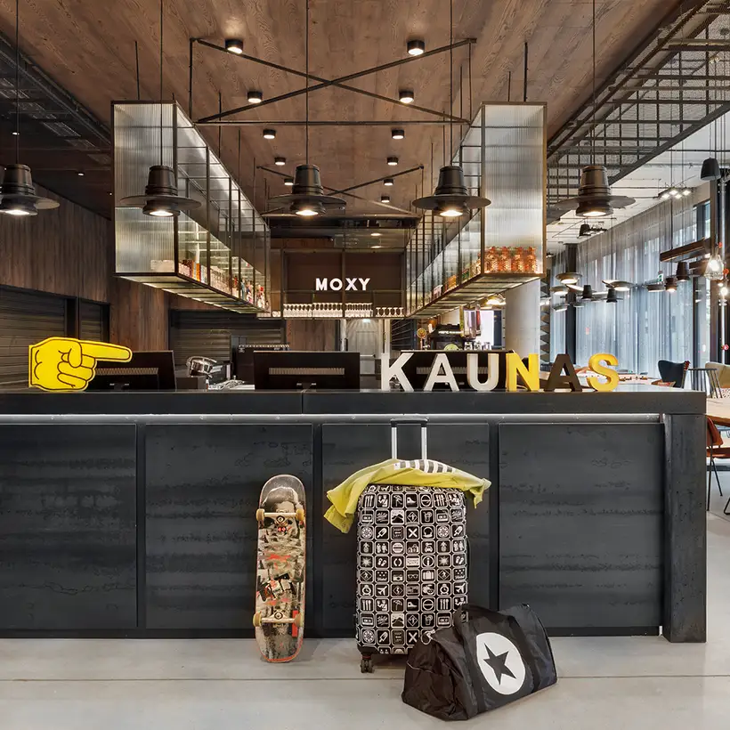 The three-star Moxy Hotel in the heart of Kaunas, the second-largest city in Lithuania, is part of the Marriott International hotel network. The Moxy Hotels rely on a combination of comfort, style and high-tech conveniences for an affordable price: they are primarily aimed at the needs of young guests. The six-storey, 5,800 m² building, which has 175 guest rooms, was opened in 2020 and is one of the largest hotels in Kaunas and the first hotel from the Moxy chain in the Baltic countries.