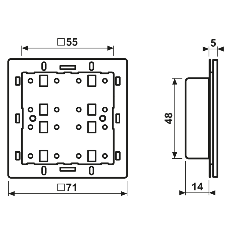 - Montagem em caixa de encastrar com dimensões segundo DIN 49073