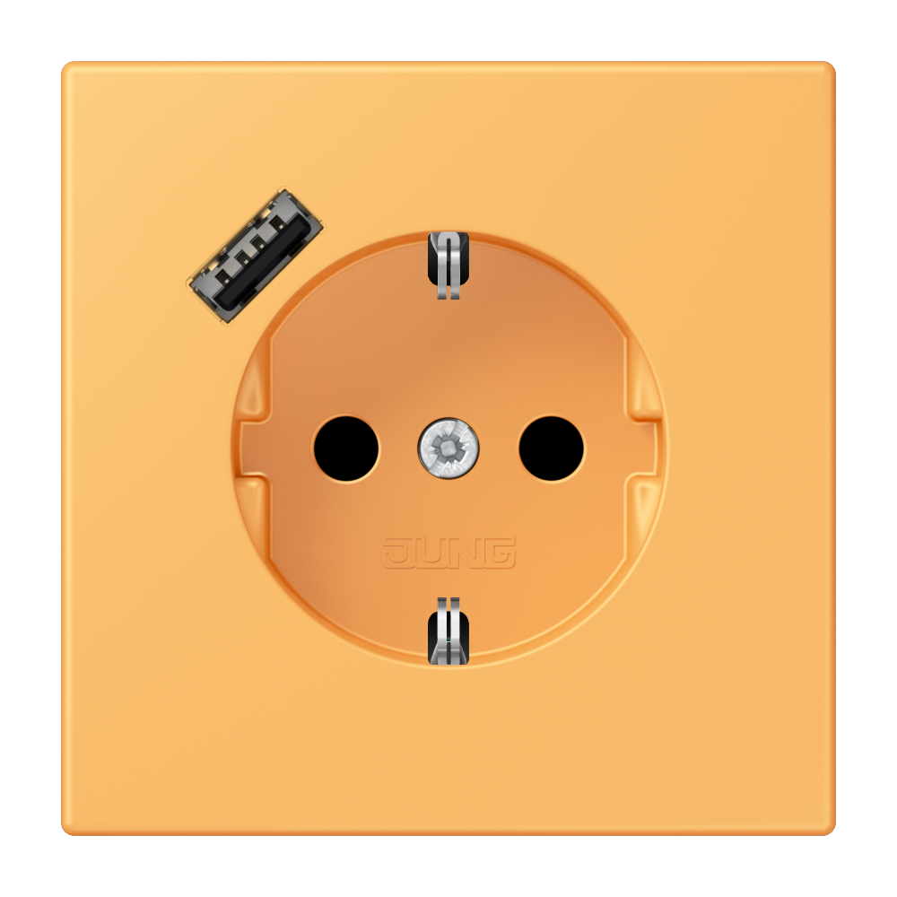 Tomada SCHUKO®, 16 A 250 V ~, com carregador USB (JUNG Quick Charge®), 1 x tipo A, Safety Plus, Série LS, ocre jaune clair (4320L)