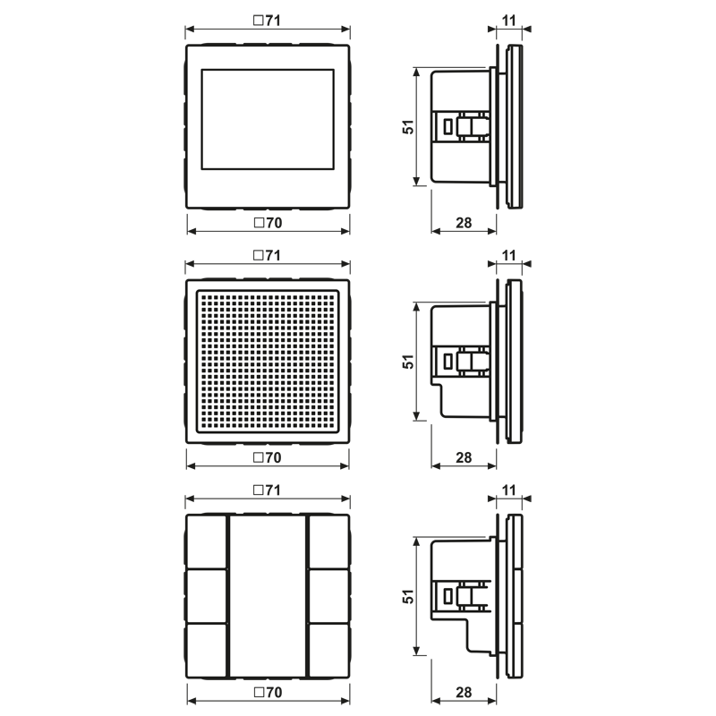 The modules of the indoor station can be installed into multiple frames (horizontally or vertically). Installation in separate frames or surface caps is possible.
